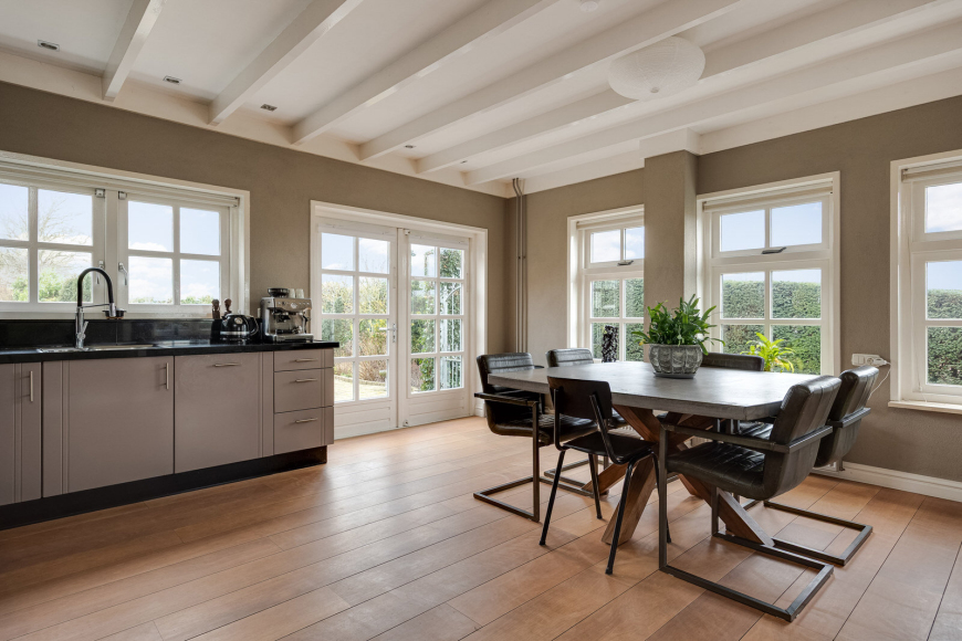 Met twee volwaardige keukens, twee badkamers en vier slaapkamers biedt dit woonhuis een uitzonderlijke mate van flexibiliteit. De royale en sfeervolle woonkamer ademt karakter uit, terwijl de orangerie een heerlijke plek is om te genieten van het licht en het uitzicht; een ruimte die binnen en buiten naadloos verbindt.